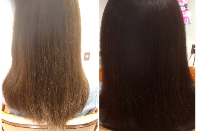 ちなみにこの日は、カットとトリートメントだけです。髪のに必要な成分がしっかり補給されると、なんとまるでカラーしたみたい!な感じにもなっちゃうんです!