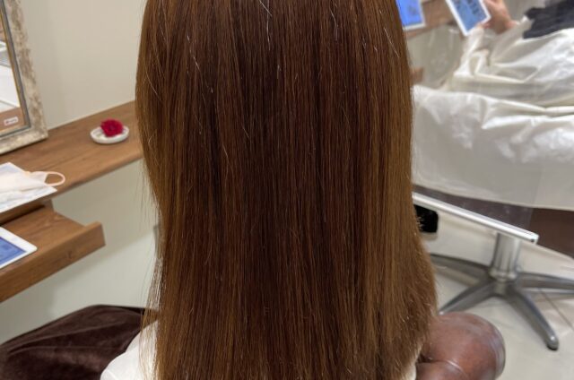 髪の老化を防ぐためレゾシステムというヘアカラーの化学物質を取り除く物を使いながら、トリートメントをし艶髪へと導きます。