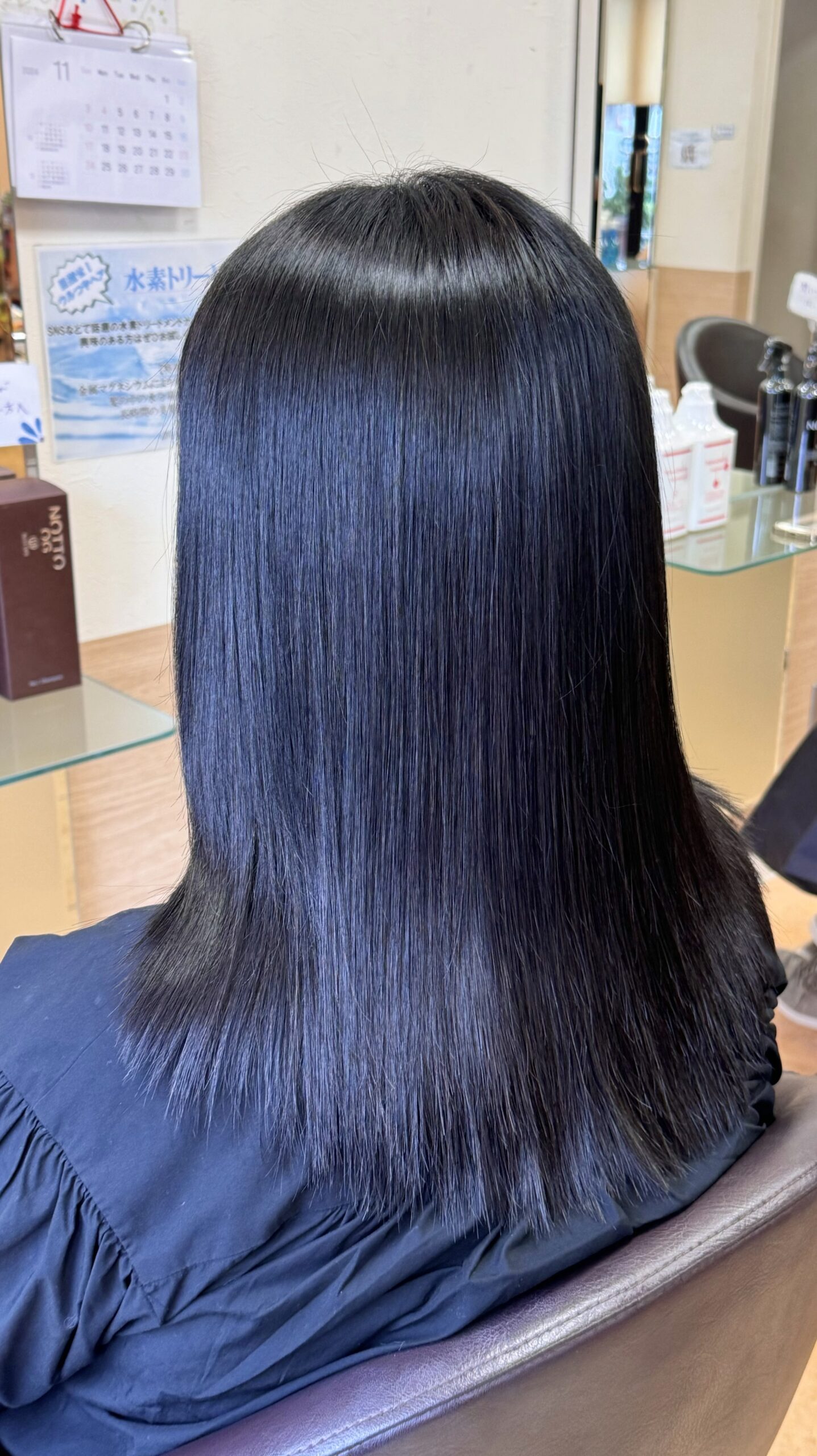 カラーとストレートを同日施術しても髪質改善できるトリートメントで艶髪に仕上がります。