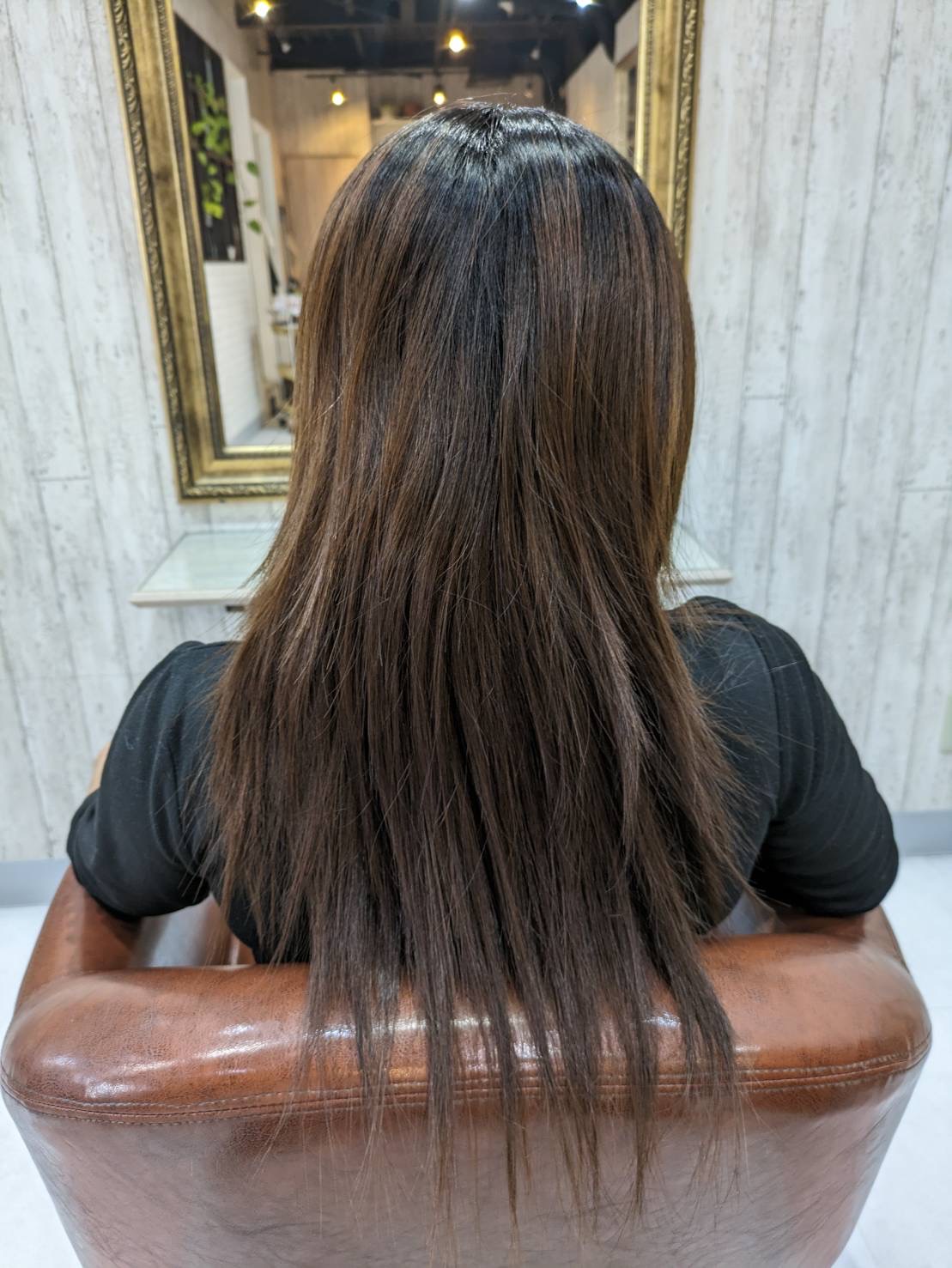 一年に一度の縮毛矯正と、半年ごとのカラーエステで、ロングヘアも、ダメージ最小できれいに、艶髪に回復しました