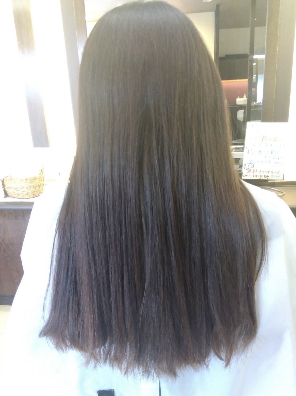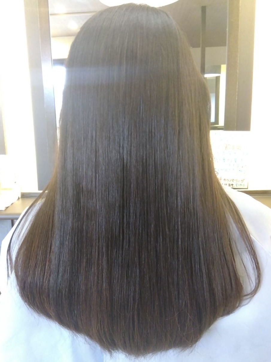 毛先のダメージがあったので、酸熱トリートメントをしてツヤと手触りがよくなりました。