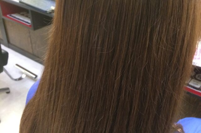このカラーエステ(髪質改善+白髪染め)なら10 年後のあなたの髪と頭皮も守ってくれます! 仕上がりもこんなにツヤツヤでサラサラになりますよ!
