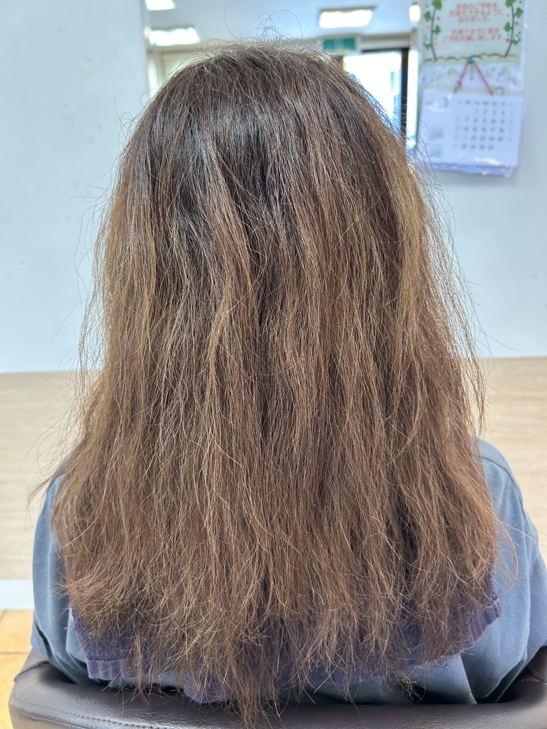 ブリーチ、パーマでの傷み、ご自身のくせ毛でお悩みでした。