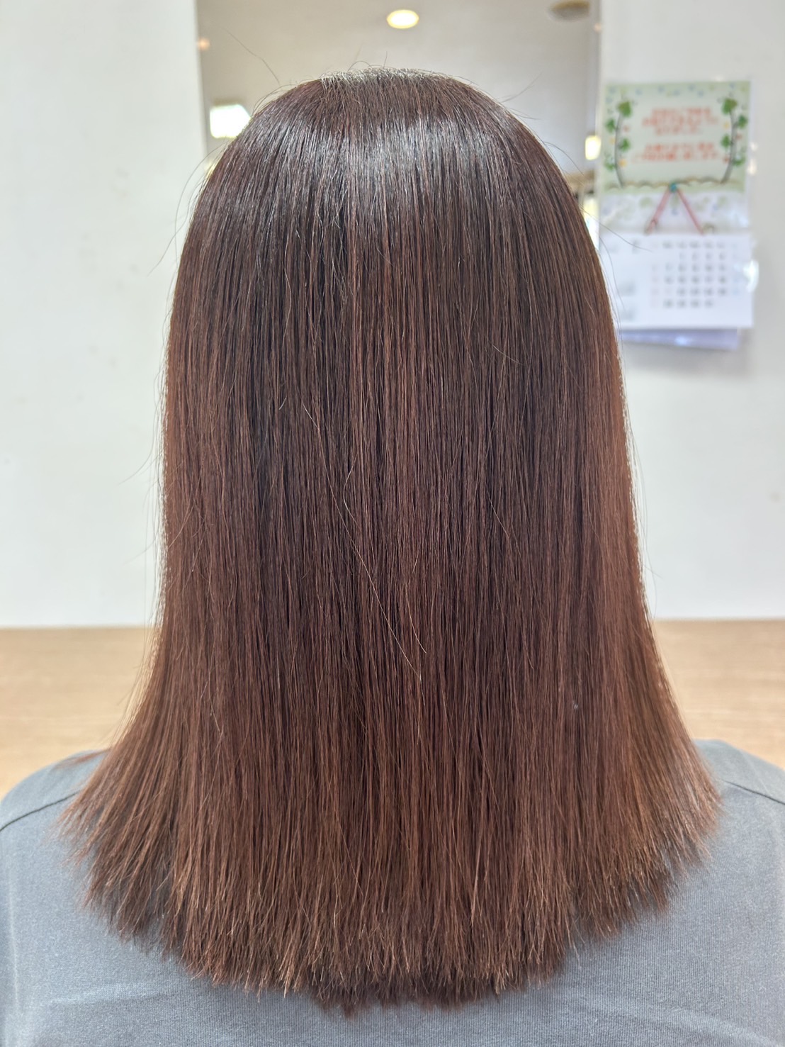 今回は、ケアカラーコースでの施術でしたが、次回のご予約ではご相談しながらコースを選び、髪質改善を目指します(^^)